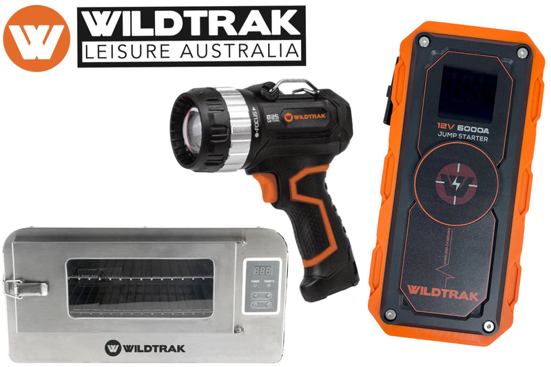 A Wildtrak S6000A Jumpstarter with Wireless Charging, Wildtrak 12V Oven with Glass Door and Digital Display, Wildtrak Spotlight Crochunter 1400L Rechargeable 4000MAH and a partridge in a pear tree!