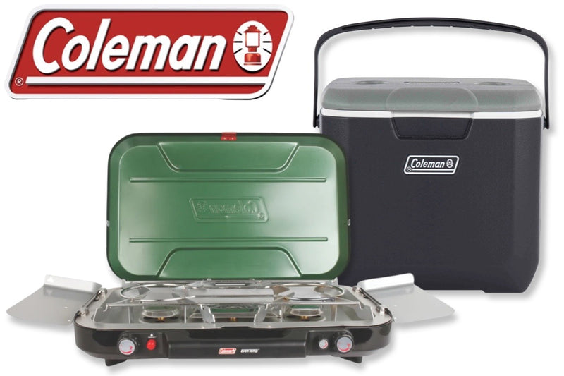 A Coleman EvenTemp 3 Burner Stove with Griddle, a Coleman 28L Extreme Daintree Cooler with Heavy Duty Locking Carry Handle and a partridge in a pear tree!