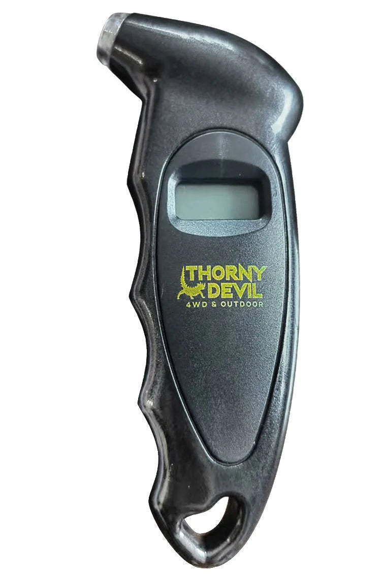 Thorny Devil Premium Tyre Deflators & Digital Gauge Combo – 6pc Set Quickly and accurately deflate your tyres with this premium off-road kit. Includes 4 pre-set deflators (10–30 PSI), a digital pressure gauge (0–150 PSI) with backlit display, multiple unit readings, built-in lights, and auto shut-off — all packed in a durable storage pouch. Perfect for 4WD adventures.