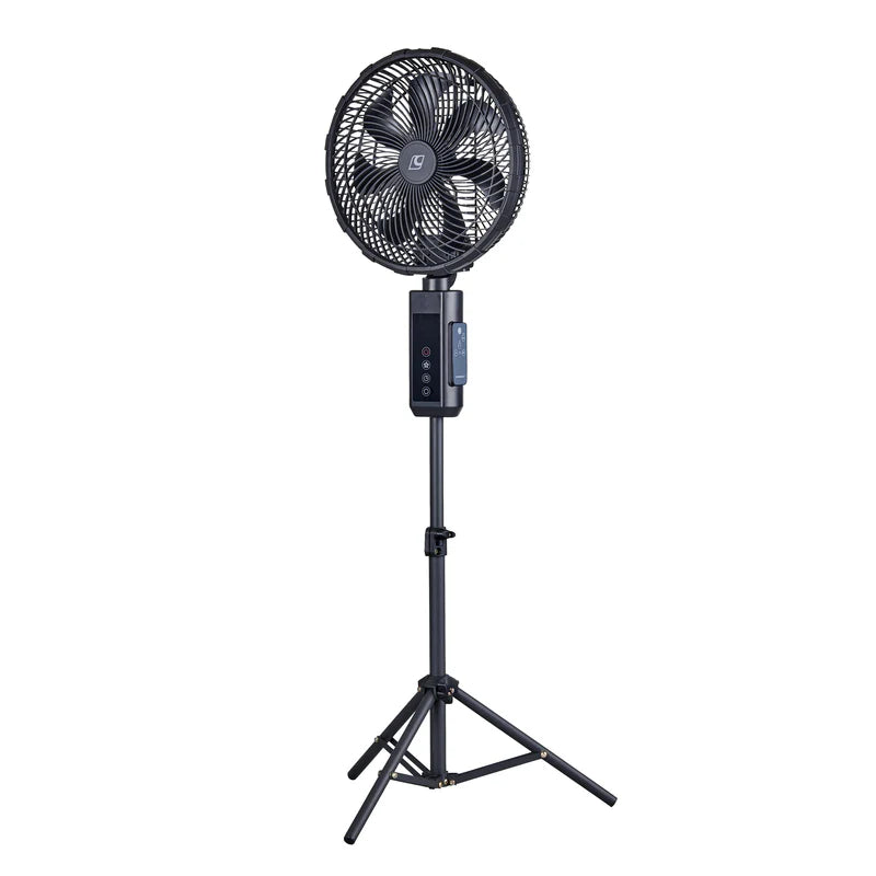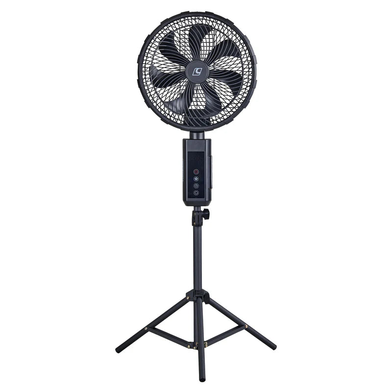 Stay cool and in control with the versatile and powerful Aerobreeze Tripod Fan. Designed for maximum comfort, it features 45 or 90-degree oscillation and an adjustable head that tilts up to 20 degrees, allowing you to direct airflow exactly where you need it. The fan attaches to a height-adjustable tripod which extends up to 130cm or easily converts into a freestanding fan with foldable base brackets. With seven speed settings, you can fine-tune your comfort level, all clearly visible on a large, easy-to-read digital display. Control is effortless whether at the fan itself or via the remote, and the built-in timer can be set for 1, 2, 4, 8 hours or continuous operation. A powerful 10,000mAh battery ensures long-lasting use, while the heavy-duty ABS plastic construction with a sturdy tripod offers reliable durability, season after season.