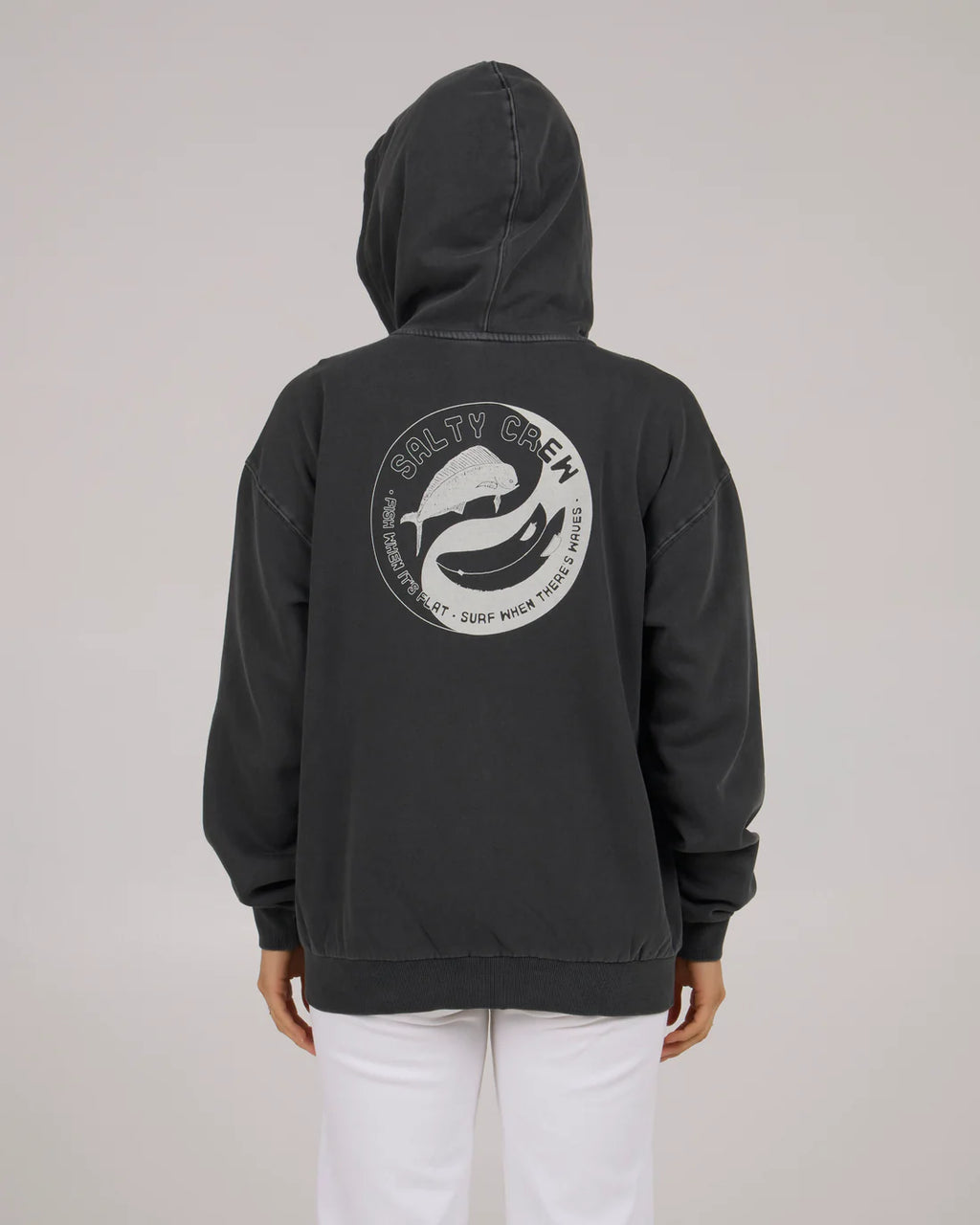 Salty Crew Fishin Yang Zip Through Fleece Hoody - Faded Black