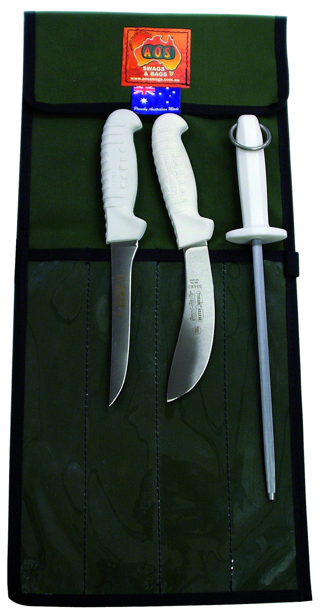 Dexter Russell SofGrip Sani-Safe Standard 3 Knife Package with Aussie Outback Supplies (AOS) Canvas 4 Sleeve Knife Wrap