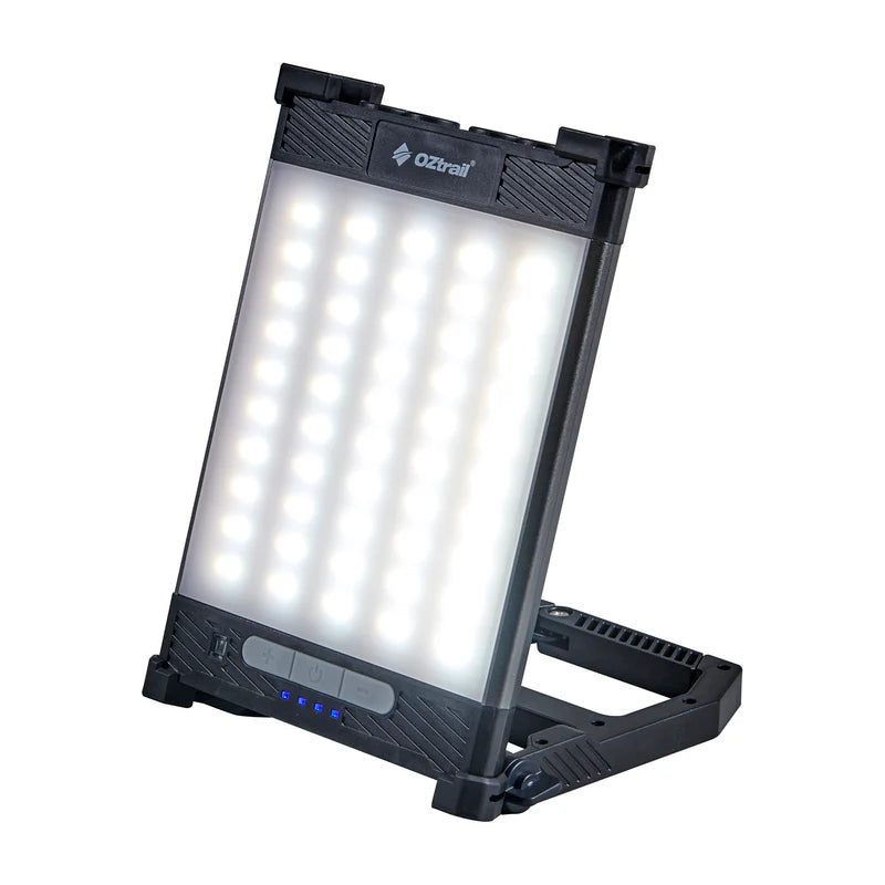 Built for the wild and the workday, this heavy-duty Lumos Panel 1600 light is your go-to for lighting up campsites, worksites, or remote 4WD setups. Its smart design offers three mounting options - stand, hang, or magnet - so you can set it up wherever light is needed most. A 180° pivoting stand gives you complete control over beam direction, with up to 1600-lumens of of dimmable light ensuring maximum visibility. Switch between cold white (6500K), warm white (4000K), or cool/warm (3000K) light to suit the task or setting. Engineered with tough aluminium and ABS housing, it’s ready to handle knocks, bumps, and dust. With a powerful 20,000mAh lithium battery delivering up to 125 hours of runtime, plus powerbank functionality for charging your gear on the go, it’s the ultimate lighting solution for serious outdoor use.