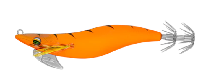 Emeraldas Nude is a visual and action jig, its unique lifelike pattern design and smooth body is designed to attract a squid by sight and action. Its smooth body design allows the lure to dart and slide effortlessly through the water. Itís a complete eging system that features attachment points designed to be used in conjunction with the Agorig Sinker system and the EG-Snap, which allows for changes in sink speed, depth and angle. By attaching the Agorig sinker to the keel eye the jig will glide slowly at a 30-45 degree angle, but when attached to an EG-Snap the lure will sink rapidly at a 75 degree angle. This is ideal for deep water or fast current situations.