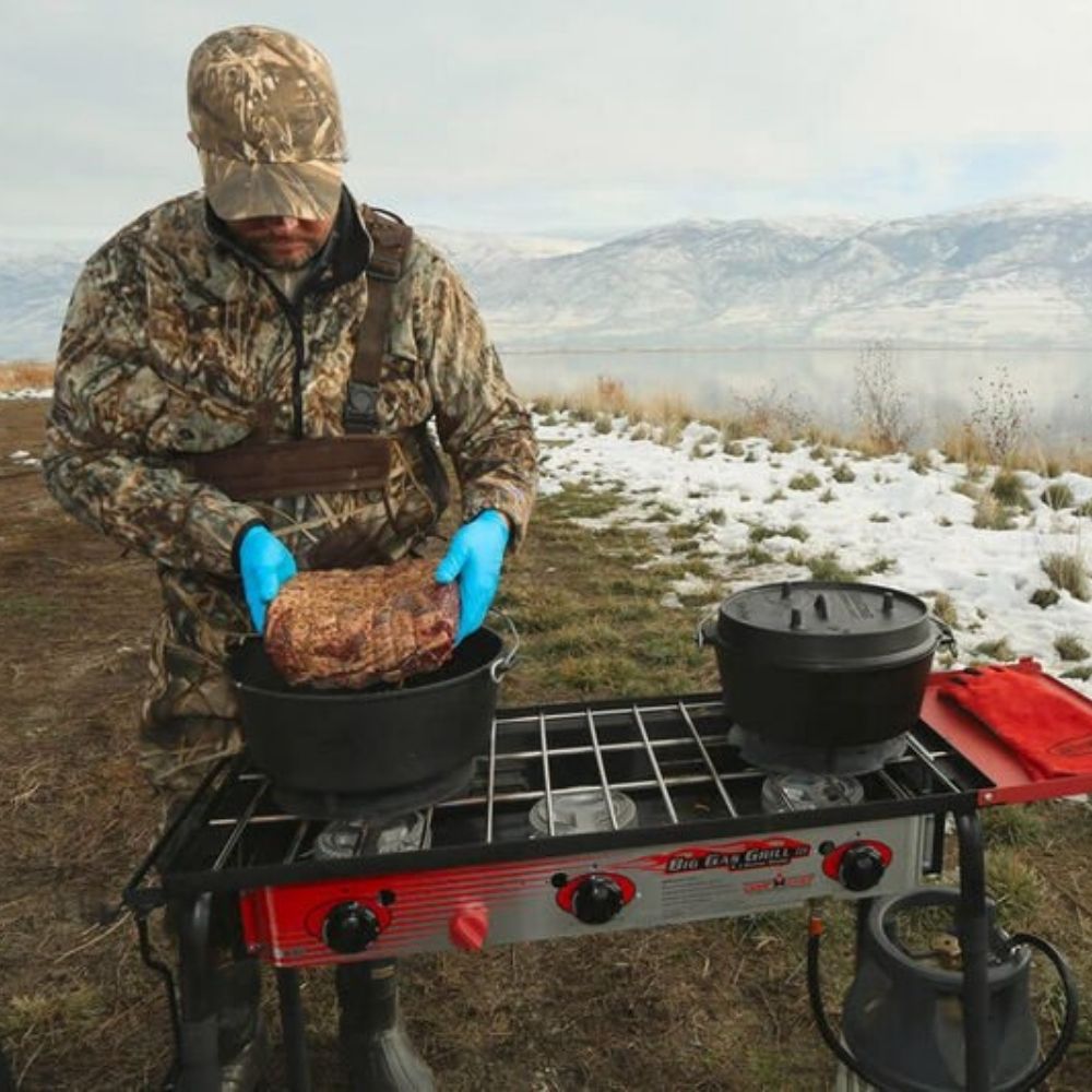Cast iron Dutch ovens are known for making some of the most delicious meals, from slow roasted meats to your favorite fruit cobbler. When cooking with this deluxe 12 quart, 14″ Dutch oven your menu will expand because the lid doubles as a full size skillet. Simply turn the lid over to cook eggs, bacon or pancakes, then replace the lid and start cooking your favorite potatoes for the next meal.