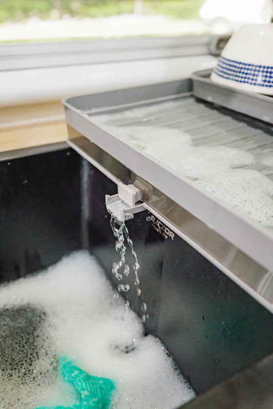 The Companion Deluxe Compact Dish Rack is perfect for caravans, offering both a compact and expandable design for small or large spaces. It includes a cutlery holder and dish holders, with water runoff directed into the base. Choose to collect the water or drain it into a sink using the built-in bung. Packs away small for easy storage and convenience on the go!