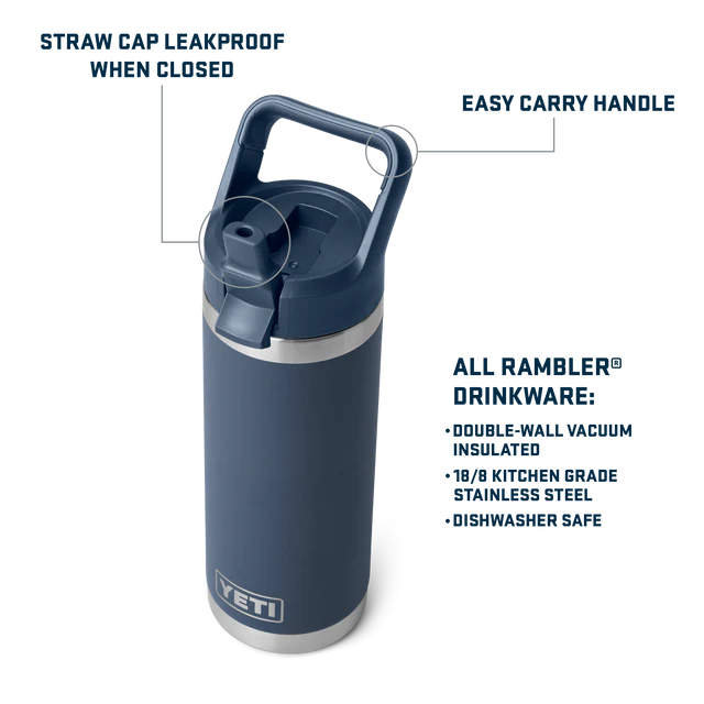 Please Note: Rambler® Bottle Straw Cap is leakproof when closed, but is not packable as the straw cap can open if pack is shaken or jostled. Do not use the Rambler® Bottle Straw Cap with hot, carbonated, or pulp beverages or for storage off food or perishables.