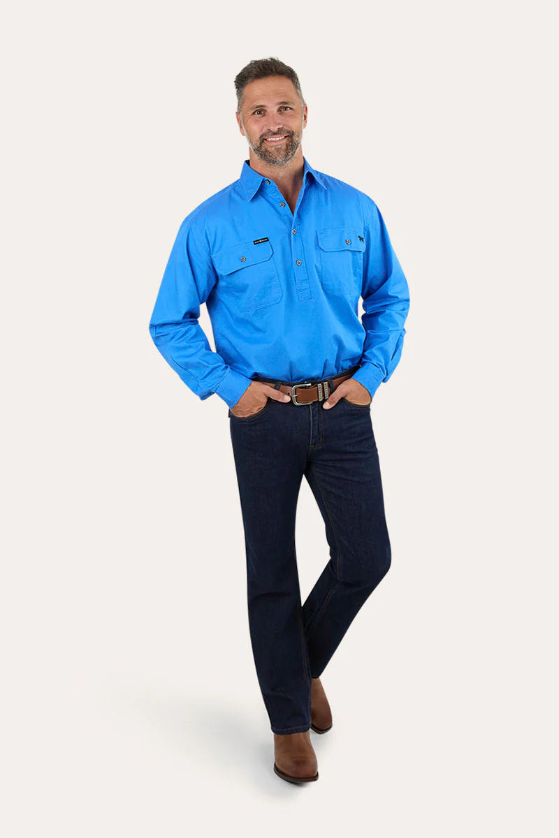 Ringers Western Mens King River Half Button Work Shirt - Blue