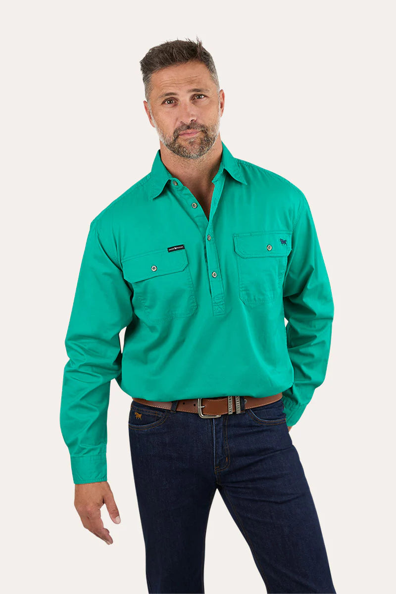 Ringers Western Mens King River Half Button Work Shirt - Green