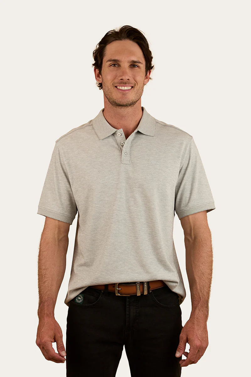 From the office to the golf course, the Tech Mens Polo has got you covered. Created from a high performance cotton and polyester blend, the Tech Polo provides the perfect balance of comfort and style. This fabric is known for it's easy wearing properties, as well as superior softness and moisture wicking capabilities. The classic fitting style features a collar and 3 button placket, which can be fastened or unfastened depending on the occasion. Ribbed sleeve hems create a snug and slightly tailored fit around the biceps - if you prefer a looser fit we would suggest sizing up in this style. A subtle signature logo embroidery on the wearer's left chest completes the look in Ringers Western style.
