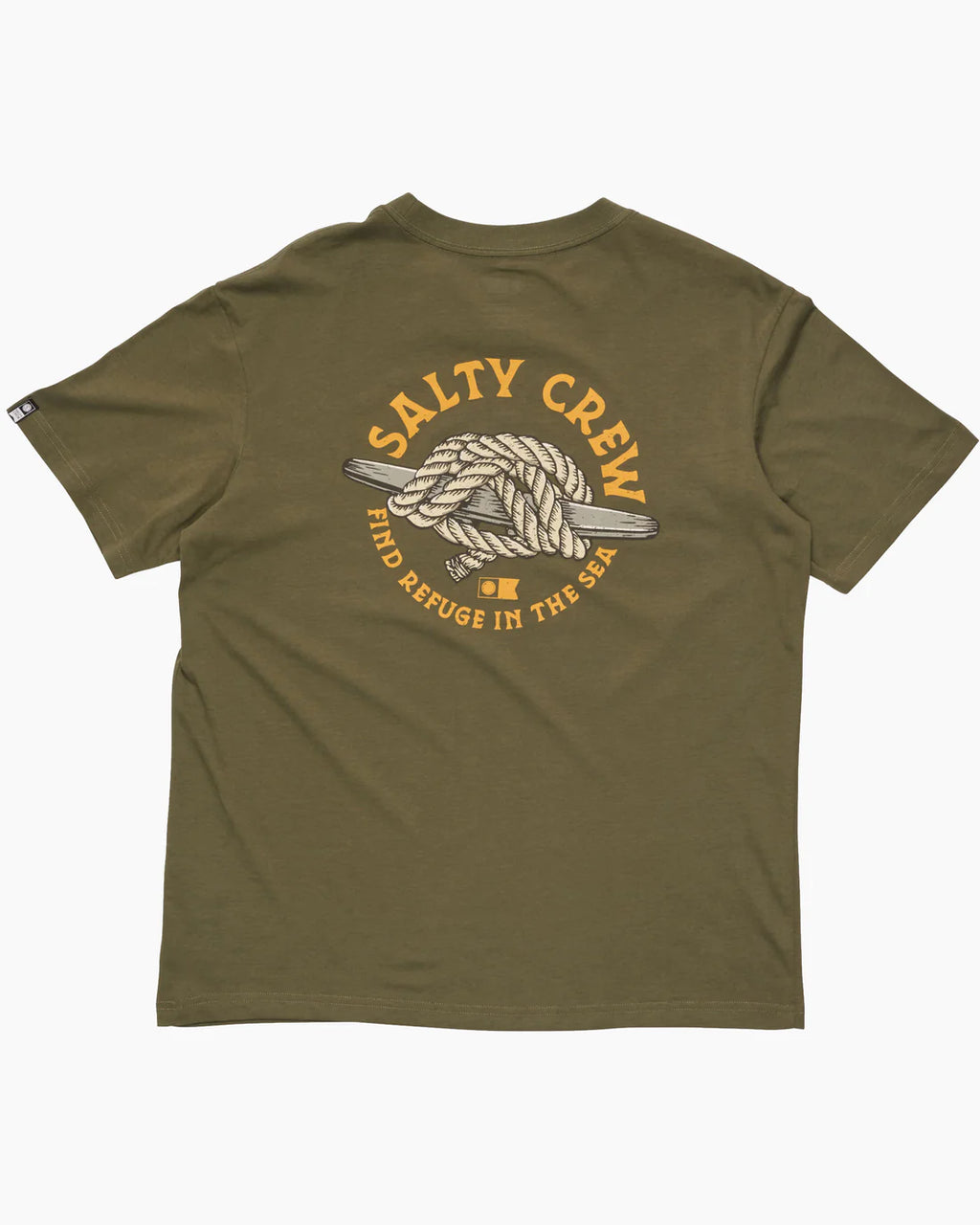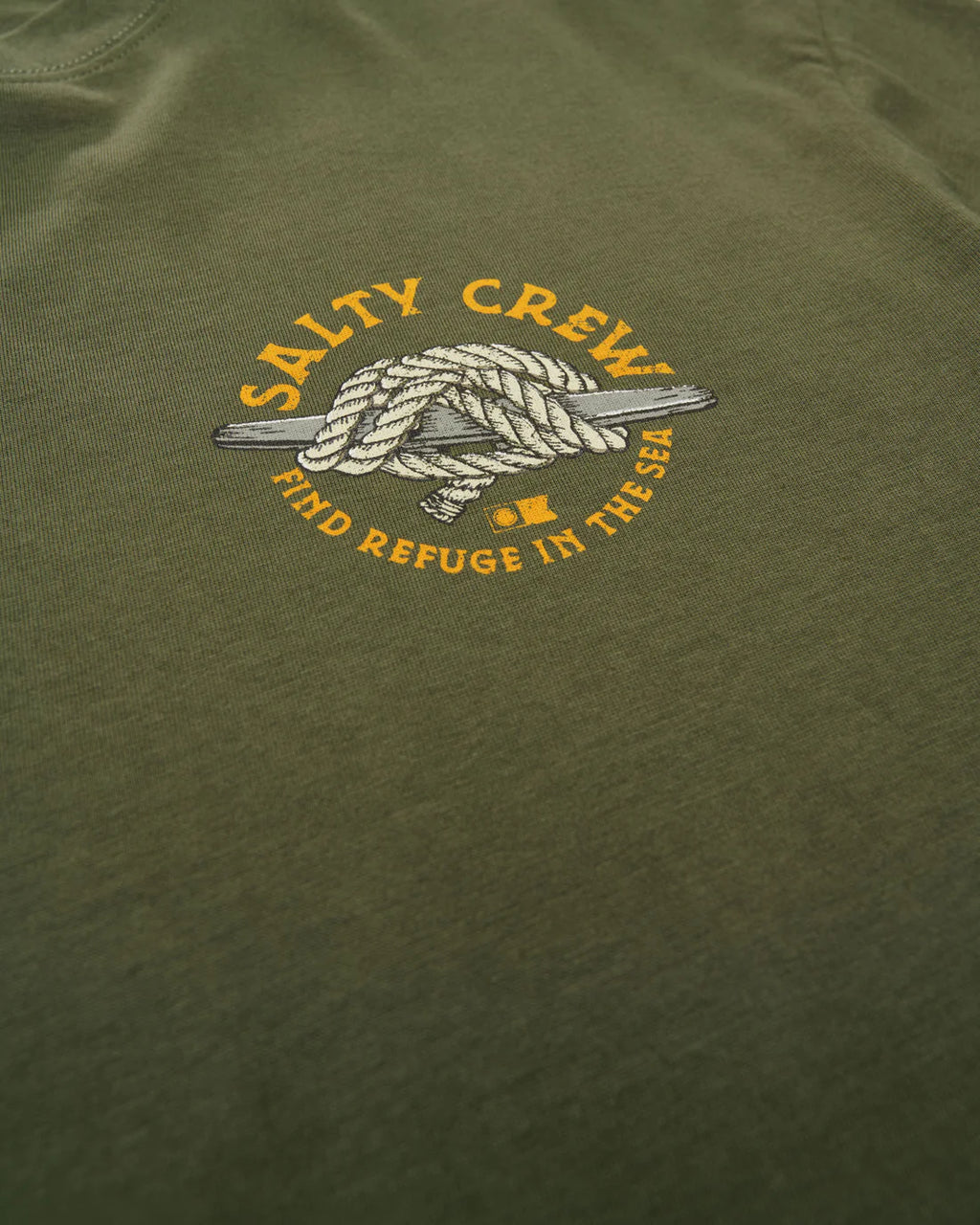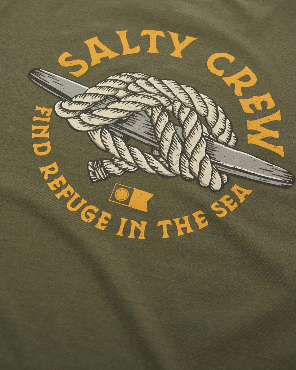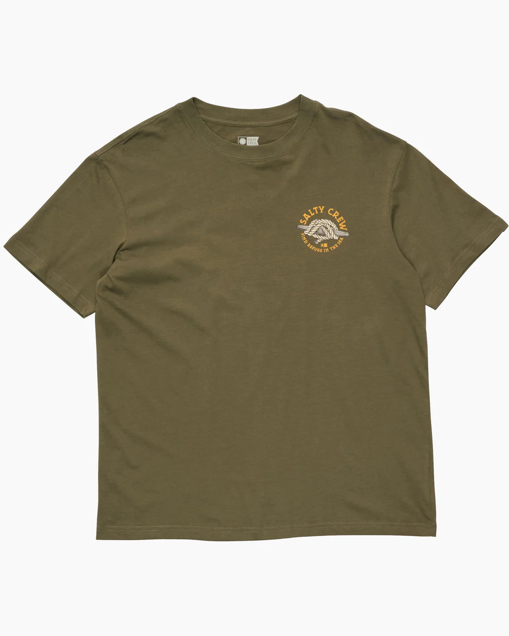The Cleat Knot Premium SS Tee in Dusty Olive is made from ringspun cotton jersey, 160gsm in weight. It features screen printed front and back prints and is finished with a Salty Crew clamp label at the sleeve hem.