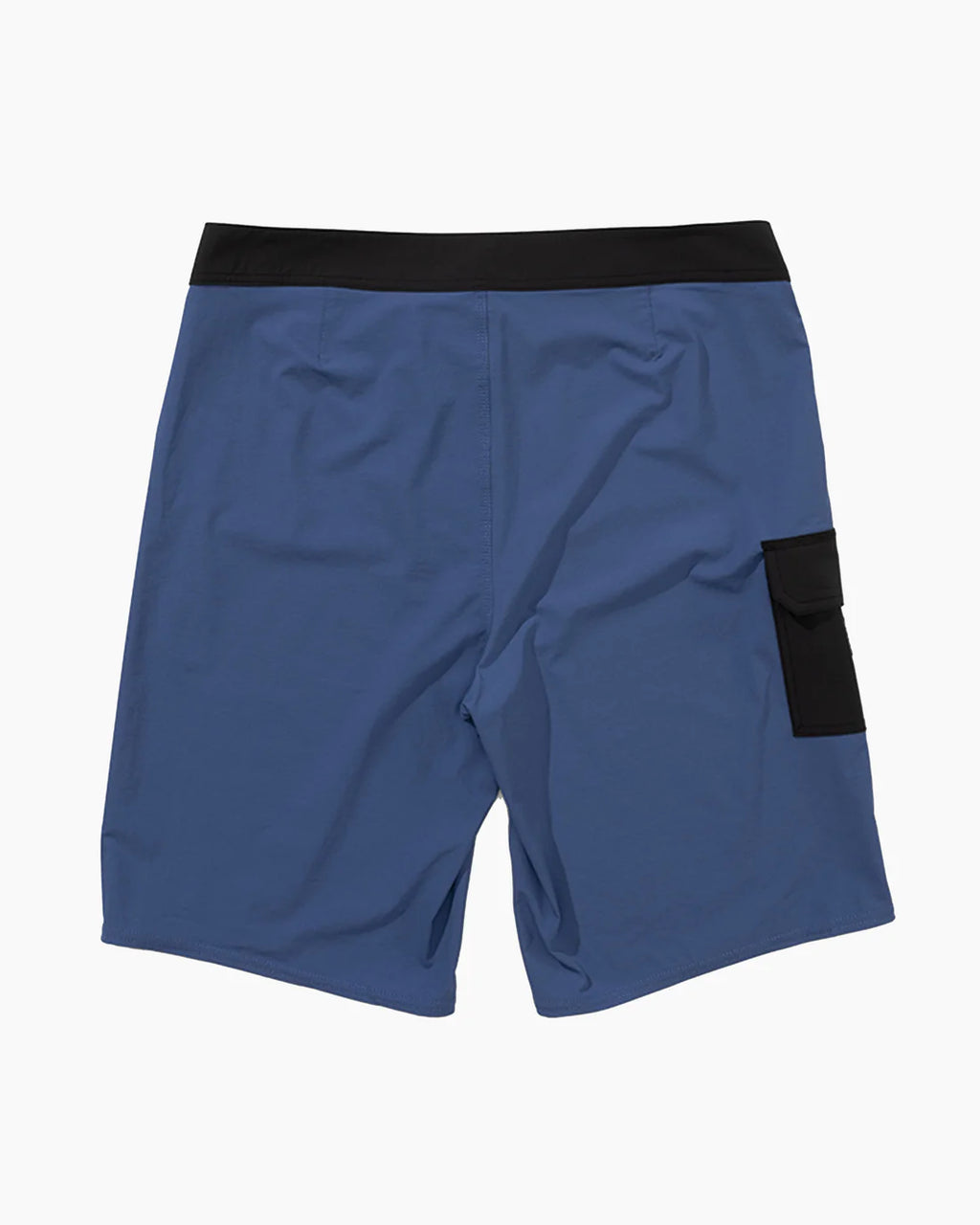 The Crew 21" Boardshort in True Navy is made from polyester/elastane ripstop fabric with quick-dry properties for comfort and durability. It features a lower right patch pocket with a velcro closure for secure storage, along with an anti-rash interior soft thread for added comfort during wear.