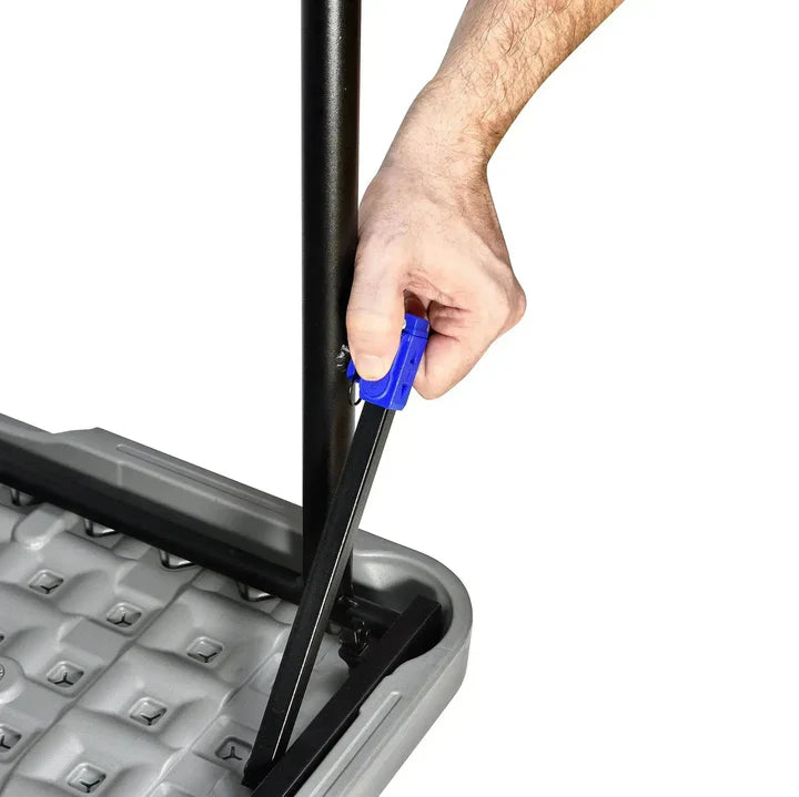 The Versalite Multi-Height 180 Table is perfect for home, office, outdoor activities, and more! It features a strong powder steel frame and durable blow-moulded tabletop, with adjustable height and an all-weather design. The top is made from UV-protected HD polyethylene, while the rust-resistant steel frame is protected with a powder-coated, weather-resistant finish. It's adjustable to 6 heights (55 to 88cm), folds in half for easy storage, and comes with a carry handle and adjustable shoulder strap.